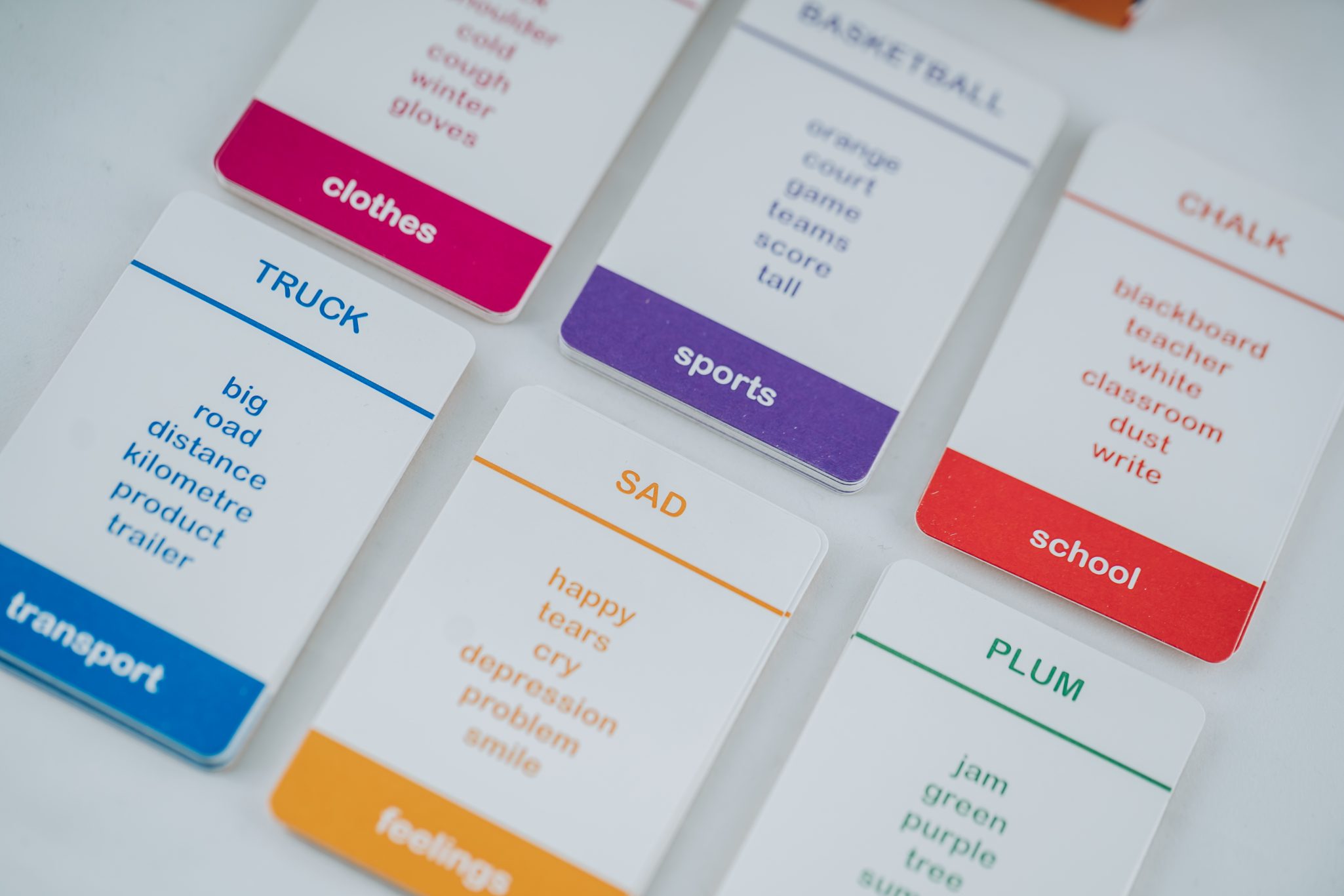 El pack incluye una selección completa de juegos tipo TABOO, cada uno centrado en distintos campos léxicos y estructuras.